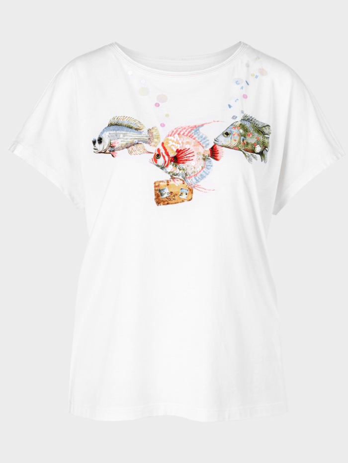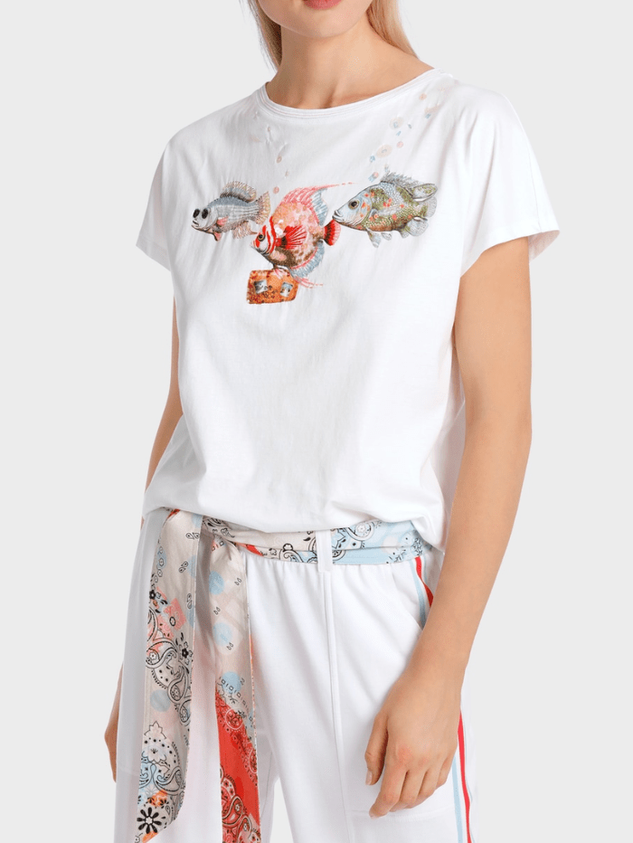 Marc Cain Sports White T shirt With Fish Appliqué WS 48.58 J98 COL 100