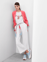 Sequins and beads on this unique design by Marc Cain make this T shirt a really stand out piece by the designer. The relaxed fit and wide round neckline provide both comfort and style. With cropped sleeves and being made from 100% cotton it is cool to wear during the warmer weather. Add some sparkle and fun to your outfit with this lovely top!