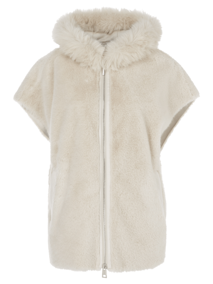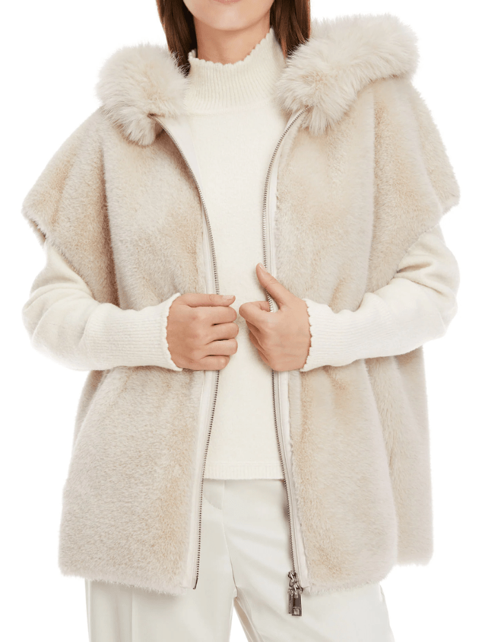 Marc Cain Collections Faux Fur Gilet In Light Beige XC 37.05 W80 Col 182