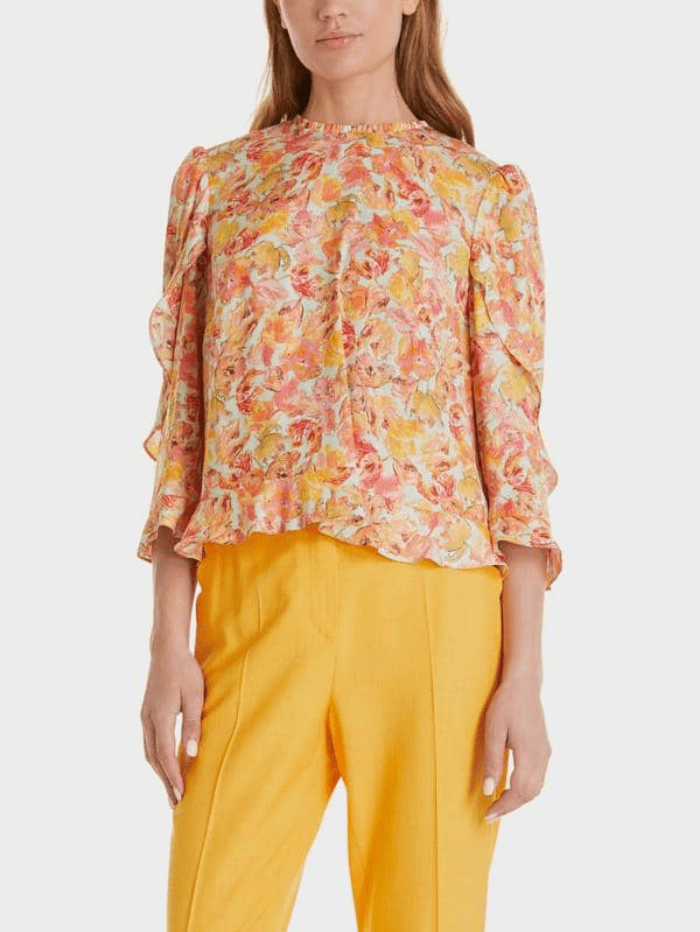 Marc Cain Collections Floral Print Ruffle Blouse SC 51.23 W98 507